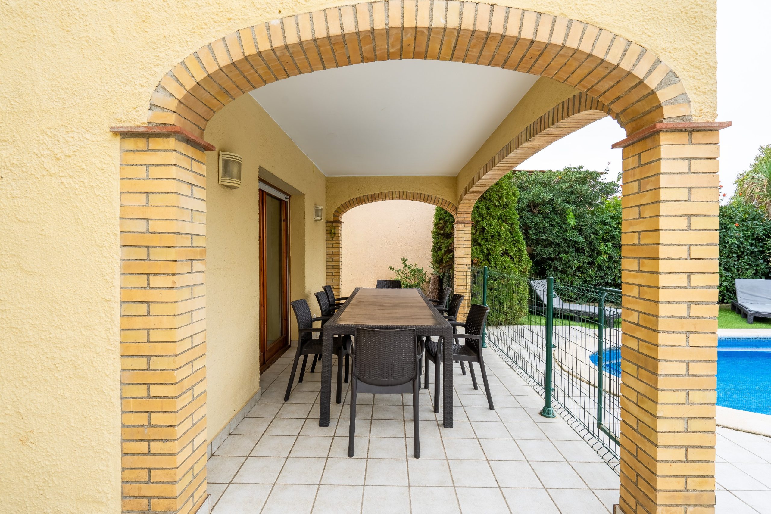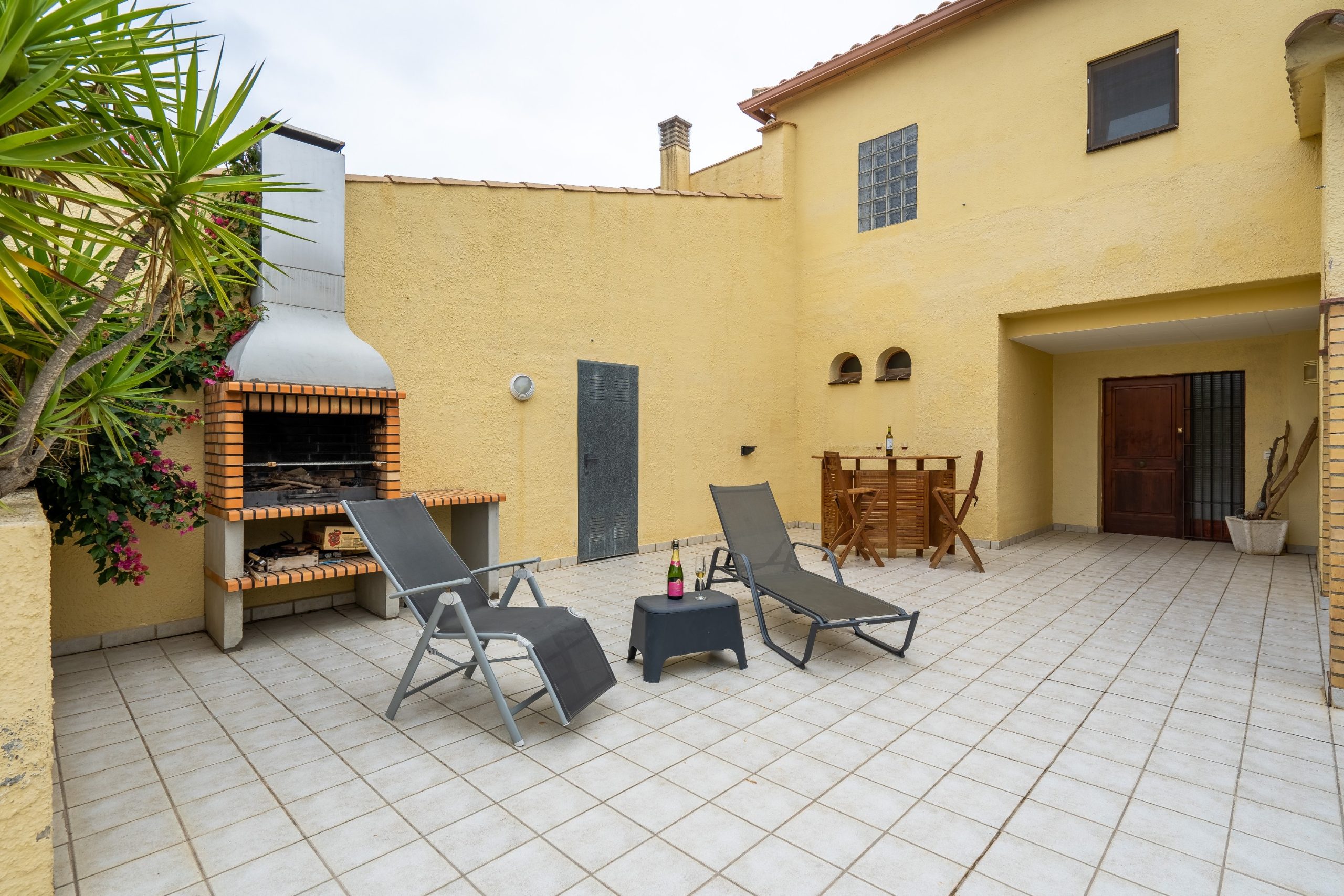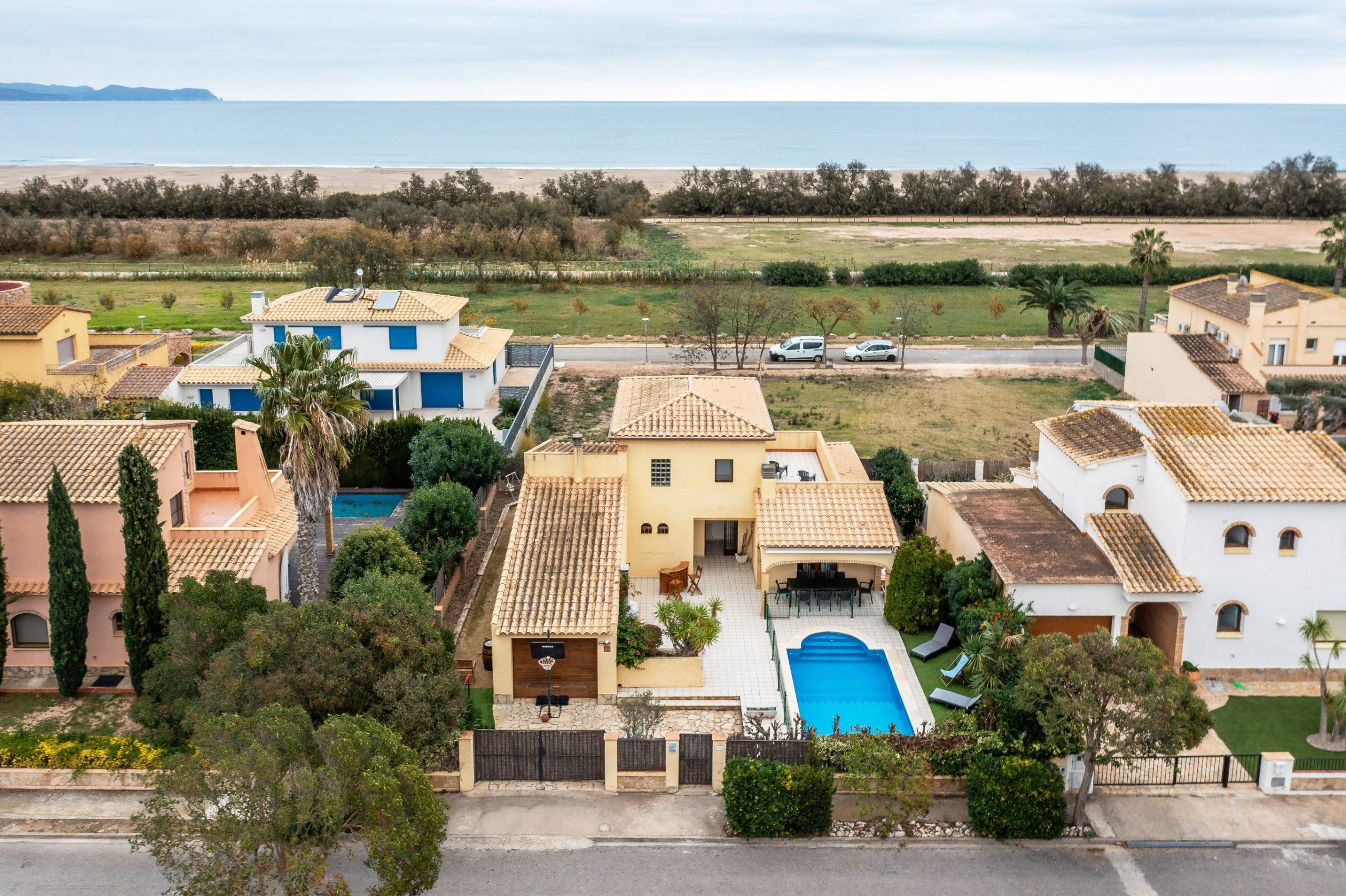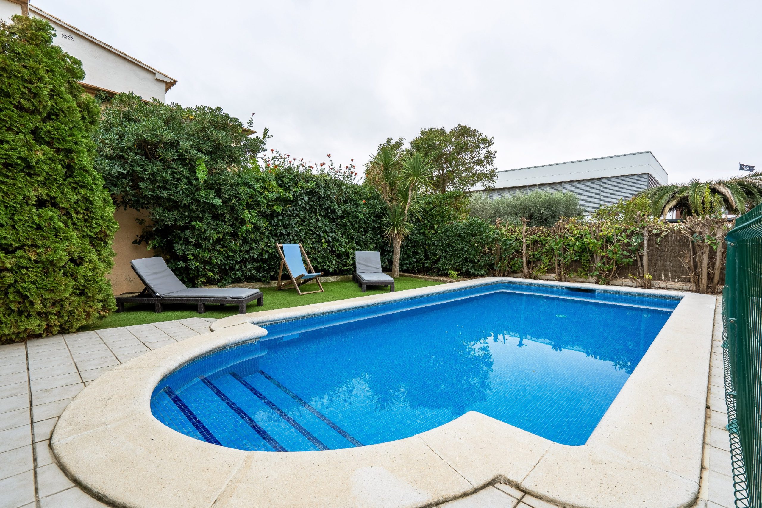 A l’extérieur de la maison, vous profiterez du jardin (fermé pour la sécurité des plus petits) avec sa grande terrasse, du barbecue, de la piscine et de l’aire de jeux et pétanque. Le salon de jardin vous permettra de manger dehors et de vous reposer sur les transats ou fauteuils. La maison dispose également d’un garage pour une voiture, mais les voitures peuvent également être garées à l’extérieur. Dans le garage, il y a un lave-linge et un étendoir.
