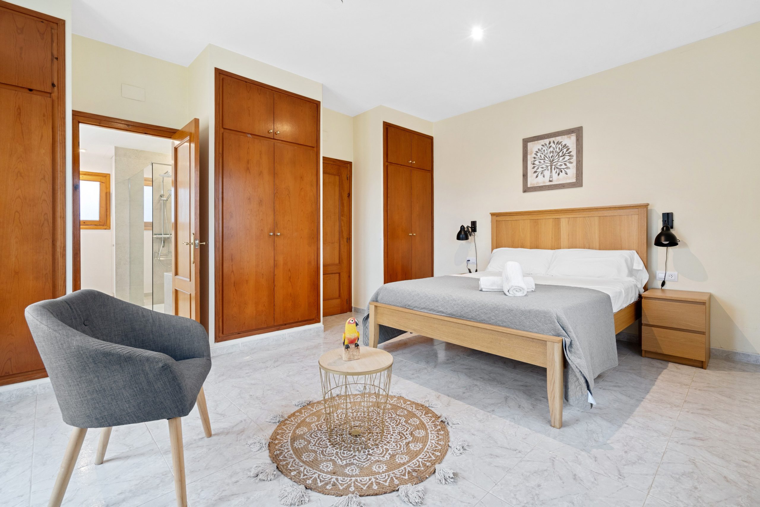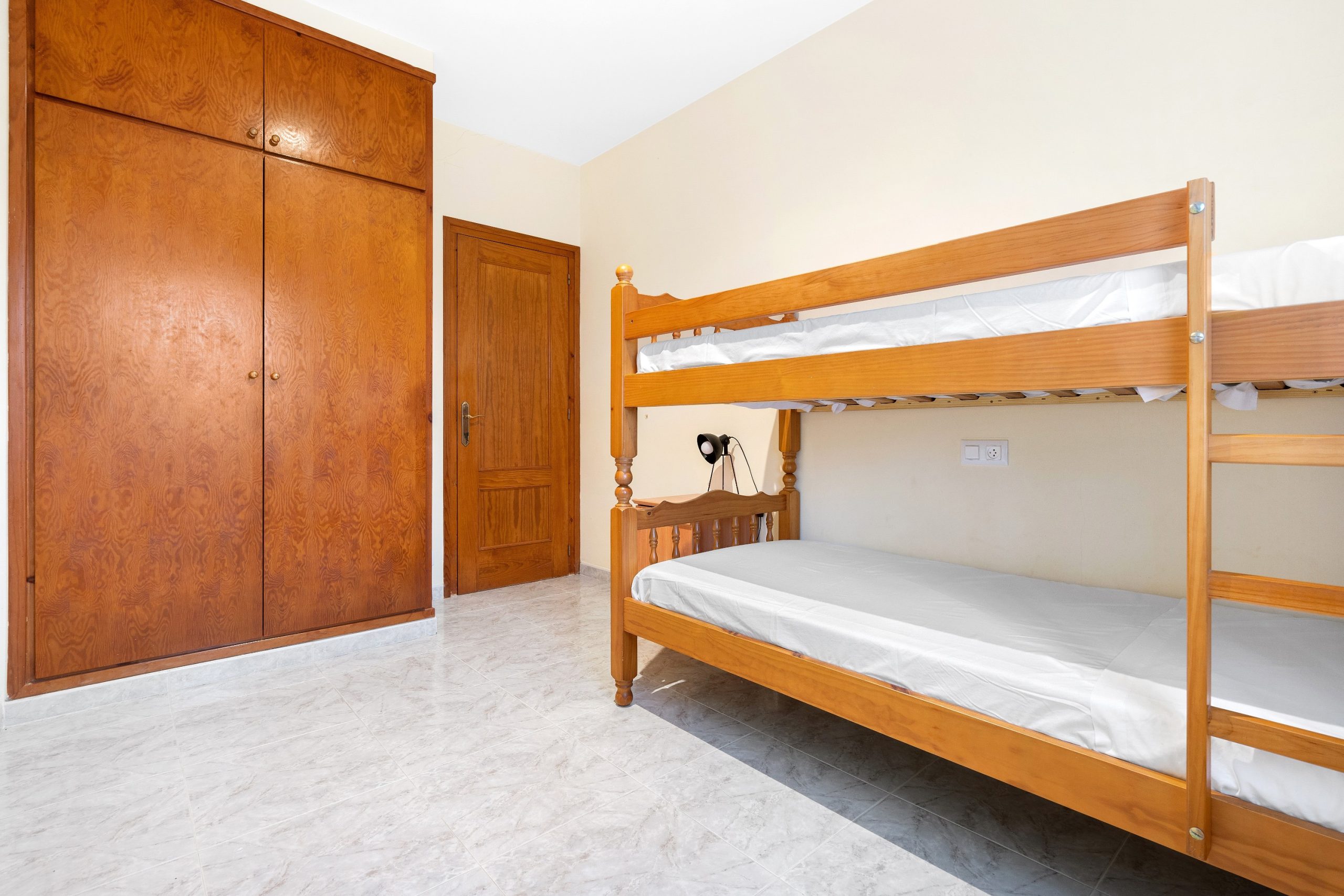 La Casa Marina peut accueillir jusqu’à 8 personnes. Au rez-de-chaussée, vous trouverez un séjour/salle à manger avec une cuisine semi-ouverte et équipée (vitrocéramique, four, micro-ondes, réfrigérateur, lave-vaisselle, cafetière, grille-pain). Dans la partie nuit au rez-de-chaussée, nous disposons de 3 chambres (une avec un lit double de 150 cm, une avec 2 lits simples de 90 cm et une avec des lits superposés de 90 cm). Il y a aussi une salle de bain avec douche.